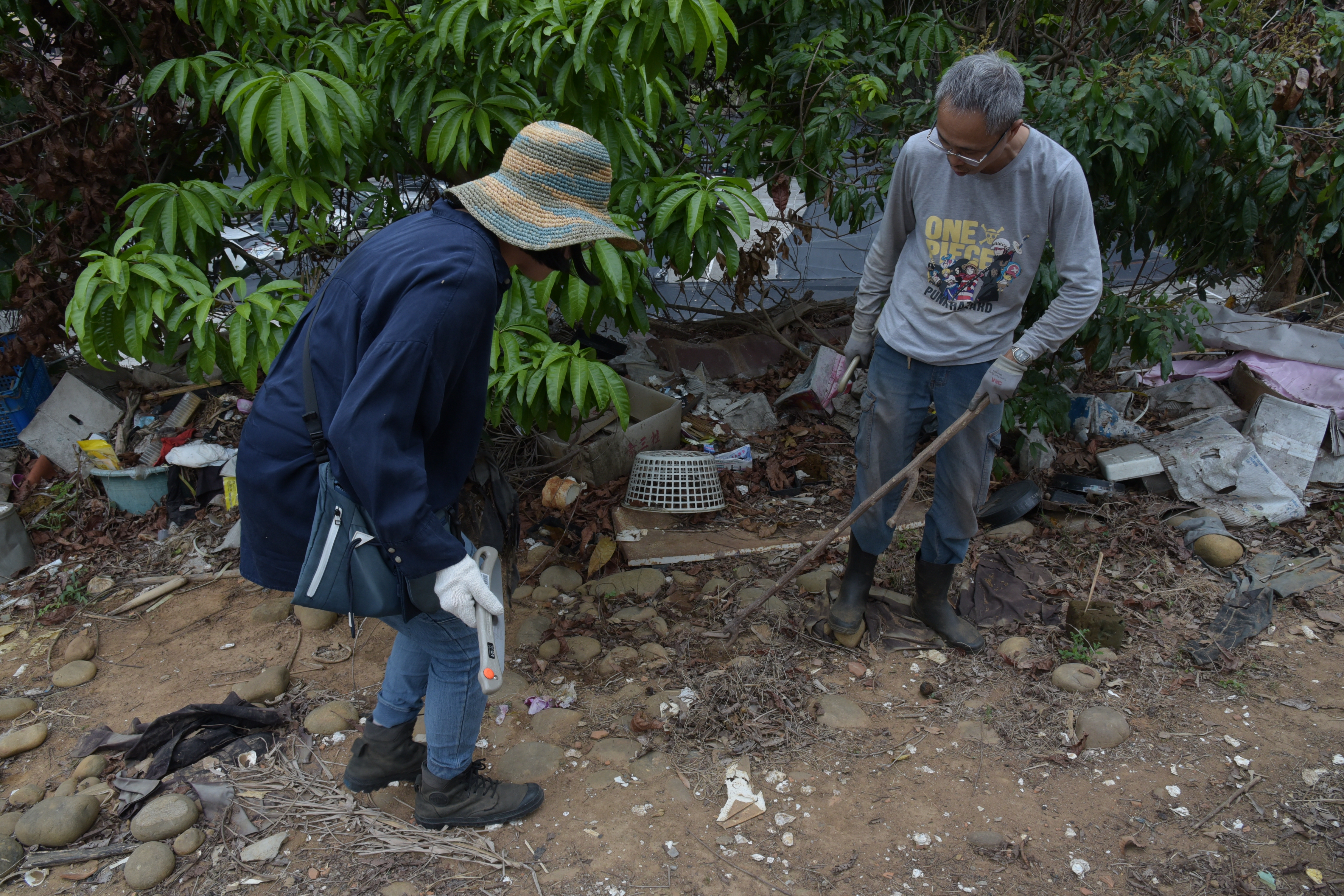 沛軒和楊逵同鄉,她將家鄉的荔枝和芒果樹、以及想像中老園丁喜悅的笑容畫下;宥樺、筱雪、允婷以印象深刻的景物為對象描繪,像是七絃竹、塑膠矮凳、土地公;瓊儀覺得走進花園、坐在家墓涼亭裡很難得,便以所在的空間為對象繪製;譯梅注意到曜聰大哥穿著雨鞋,想像一代代的老園丁都穿著雨鞋在這塊土地上工作,遂畫了雨鞋站在砌滿鵝卵石和長滿花的土地上;約於十五年前來過花園的信允畫下了「送報伕」。