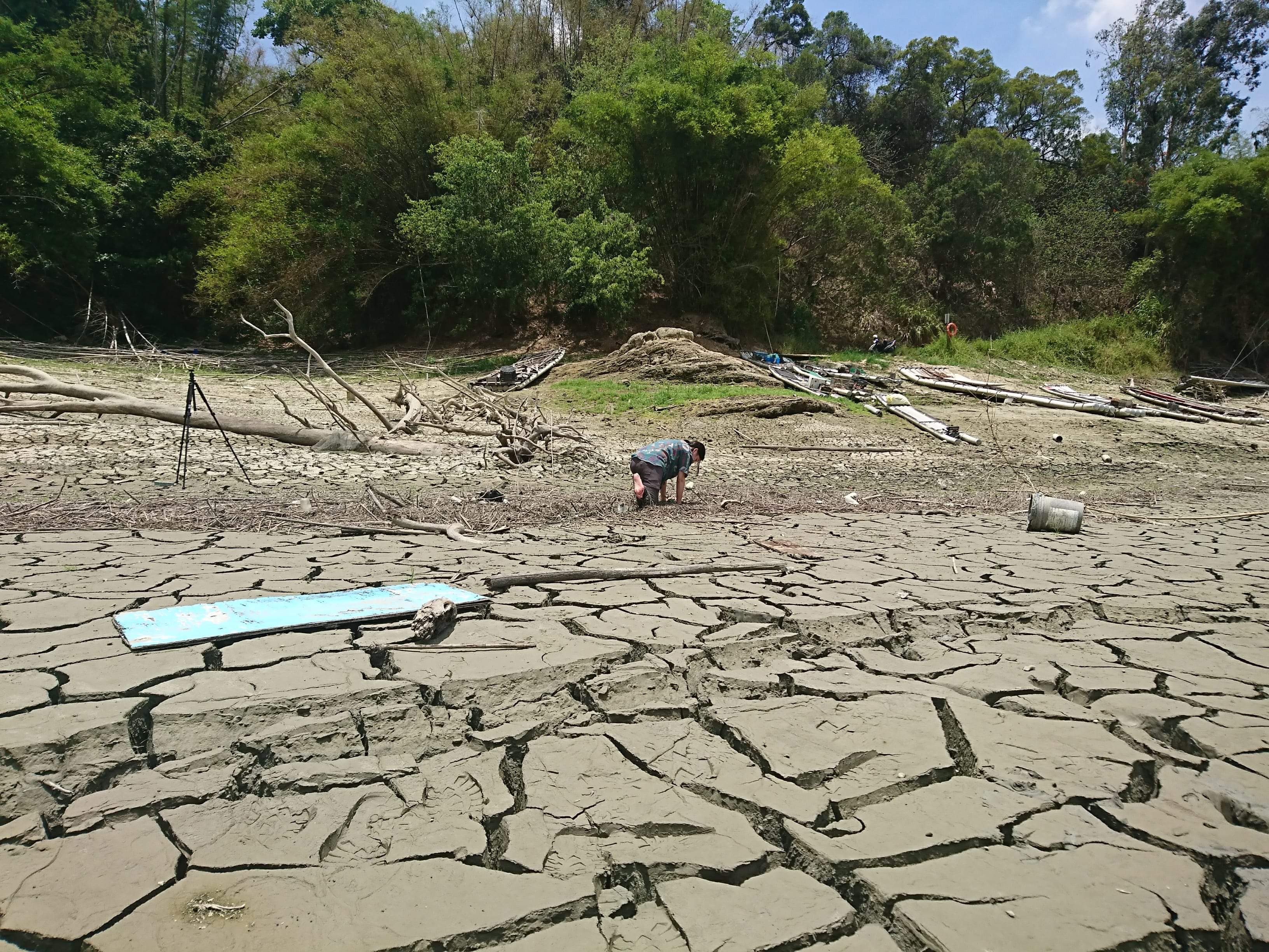 年少時喜歡穿越竹林、晃到烏山頭水庫,心裏讚嘆:「啊,真是人間仙境啊!」踏上隨著水波晃動的膠筏、跳下去游泳。一次,在乾枯期陷入了淤泥,黏膩的力量不斷的將我往下吸吮、半身沉入,我抓著周圍漂浮而沉積的垃圾死命地攀爬。過程中,水庫從美好風景,轉為感受到地形、水量變化,有身體感的土地,而後喚起曾聽聞的種種零碎話語。